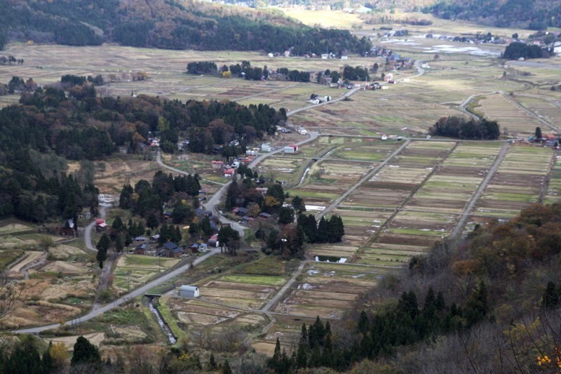 峠からの眺め。眼下に柏崎市西部の集落が。