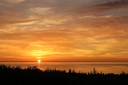 西の空の海上に雲の切れ間があり、日没はかろうじてそこから陽が射し、いっとき鮮やかな海になった。