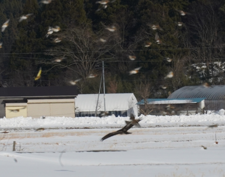今年撮ったのは飛翔ばかり。本日は田の食餌に出会った。