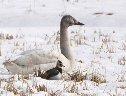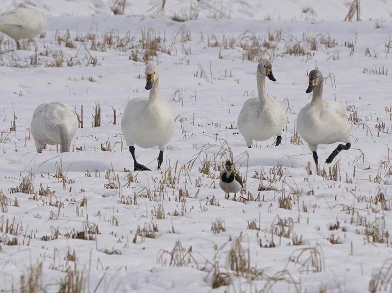 下萌えの田に水鳥、ハクガンまで。