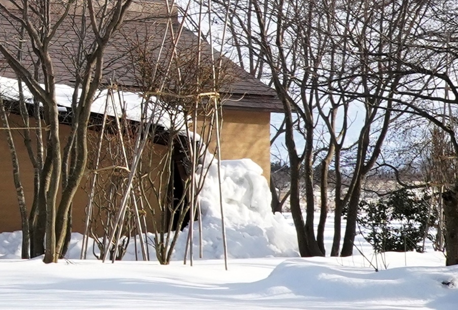 それは仕方が無いとして、昨日庭の雪面にバンクズやお菓子の残り、それに古米などを混ぜて播いた。辛い冬期を過ごす野鳥を慰労するためだった。