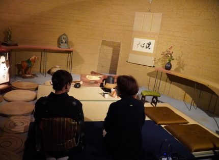 帰路、上越教育大学前の「フカミ美術」に寄った。二階のお茶室で呈茶があり一服頂いた、