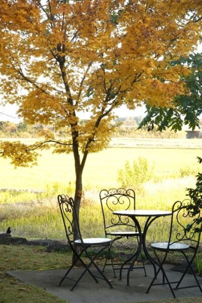 - 出たり消えたり手品のような毛糸(ニット)のチョッキ(ベスト) 樹下美術館のモミジ。