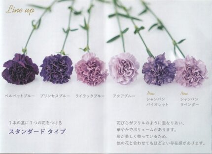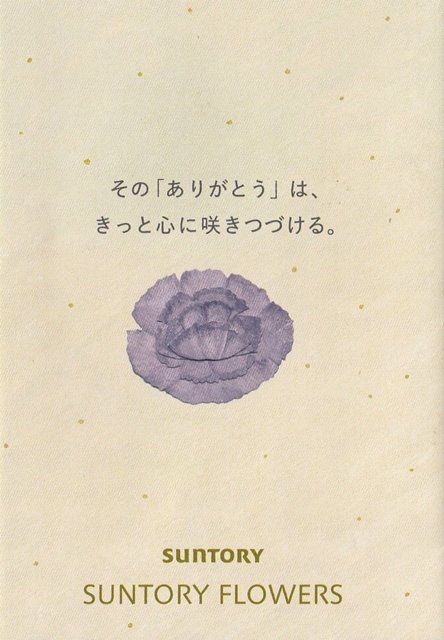 特にカーネーションは、サントリーの系列会社「サントリーフラワーズ」お得意の青系で、「永遠の幸福」の意味が込められていました。