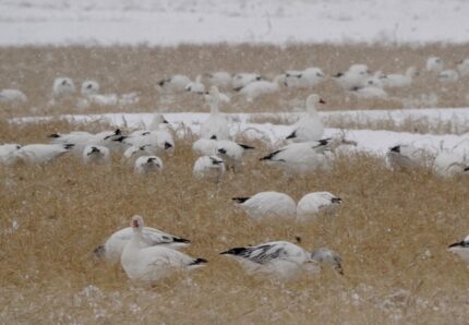 本日午後は在宅訪問がなく雪中近くへ探鳥に行きました。悪天候の日によく冬鳥を見る場所です。すると一番お目当てのハクガンが沢山いたではありませんか。。