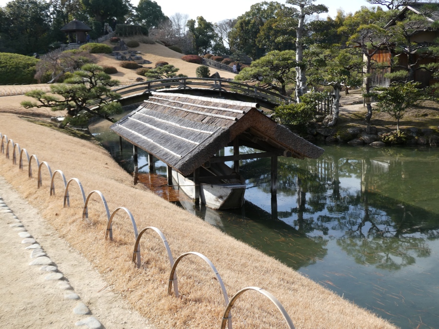 後楽園は広大で池と水路などふんだんに水があしらわれる庭園でした。