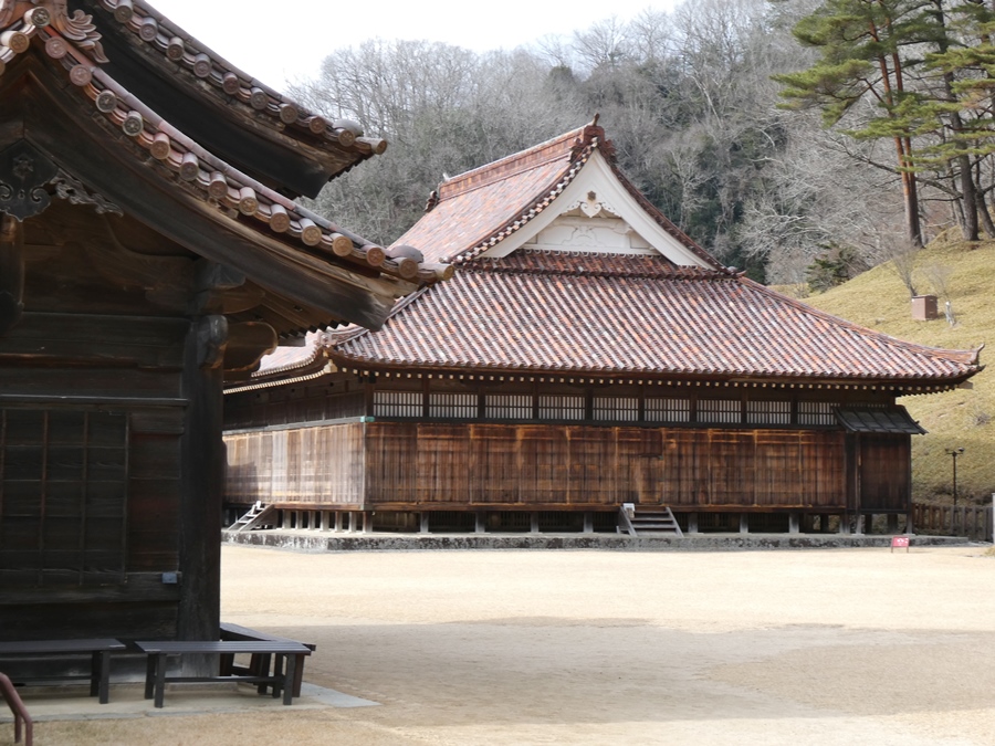 山間に入ってすぐに目的地、国宝や重文の建造物群を有する特別史跡「旧閑谷学校」でした。