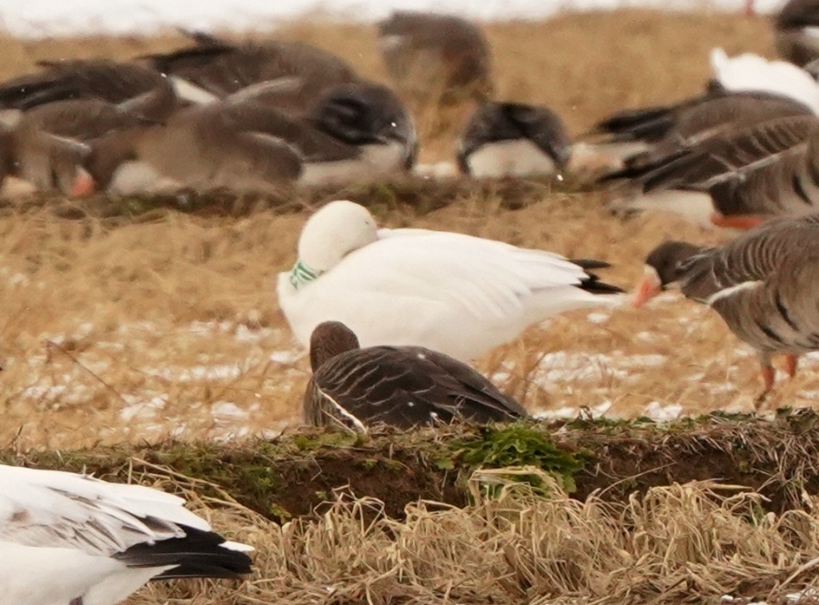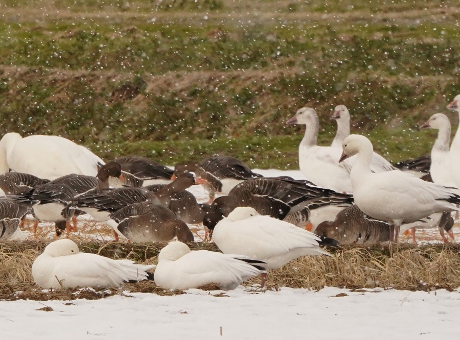 すると2月15日に柿崎区で大小いくつものコハクチョウの群を見、17日午後はハクガンの群と出会った。ハクガンは幾つかのグループに分かれて見られ、全部足しても大雪前より数は少なく感じられたが、戻ってくれて嬉しい。