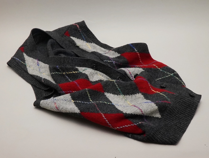 失くしたゴルフから一ヶ月が経った11月上旬の寒い日、ベッドの引き出しを開けてセーターをひっくり返したところ、なんと「毛糸の」「アーガイルの」「ボタン留めの」あの「チョッキ」が現れた。夢で見たのはここだったのか。